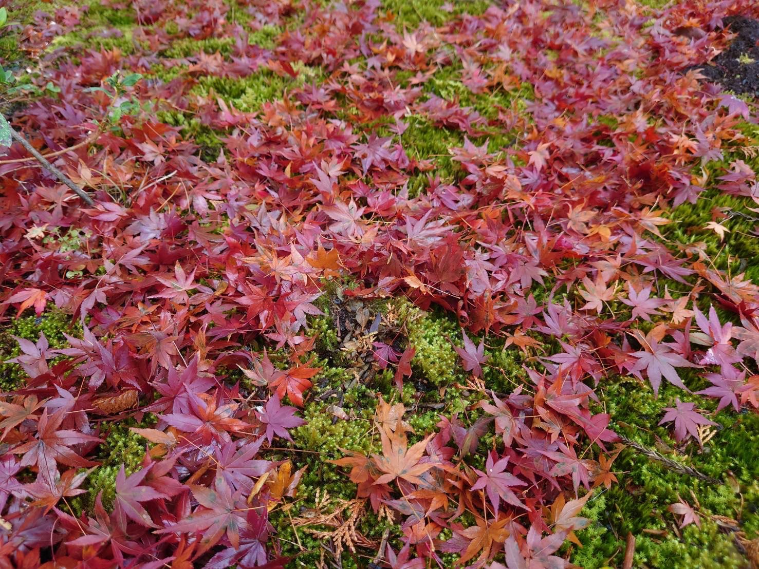 気温が下がり、紅葉も落ち葉となりました。赤い絨毯のようで、少し暖かく感じます。